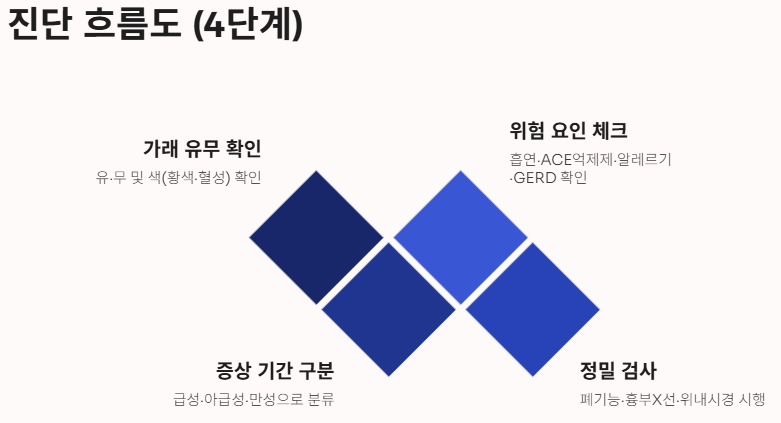 특히 밤에 심해지거나 오래 지속된다면 단순한 감기 증상이 아닐 가능성도 있습니다.